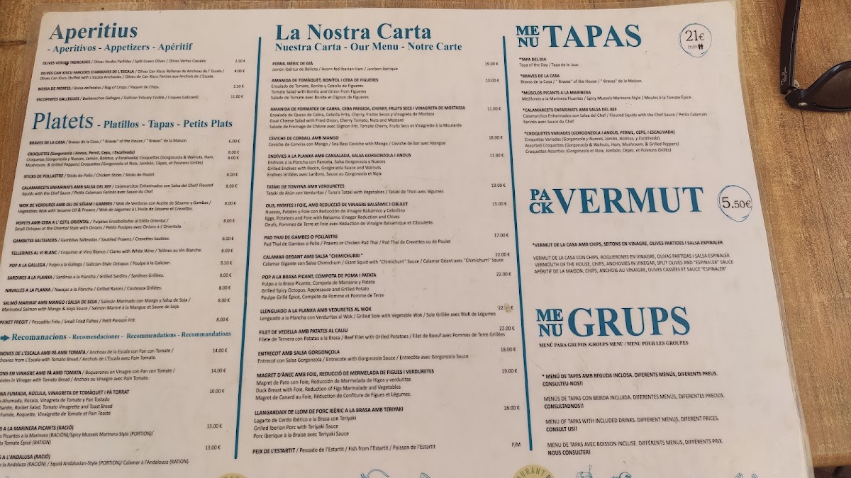 Nestled by the scenic port of L'Estartit, Restaurant Racó del Port offers a vibrant culinary experience that reflects the essence of the region. The menu showcases a delightful array of traditional Spanish tapas, highlighting quality ingredients such as acorn-fed Iberian ham and fresh seafood. Signature dishes like the Sea Bass Ceviche with Mango and the rich Goat Cheese Salad stand out for their exquisite flavors and presentation. Patrons rave about the friendly service and the inviting atmosphere, making it a favorite among locals and tourists alike. The 22€ menú del día is a steal, providing excellent value for the fresh and tasty offerings. Although some may find the house’s interpretation of patatas bravas slightly unconventional, the overall experience is one of culinary delight. Visit Restaurant Racó del Port for a memorable taste of Catalonia by the sea.